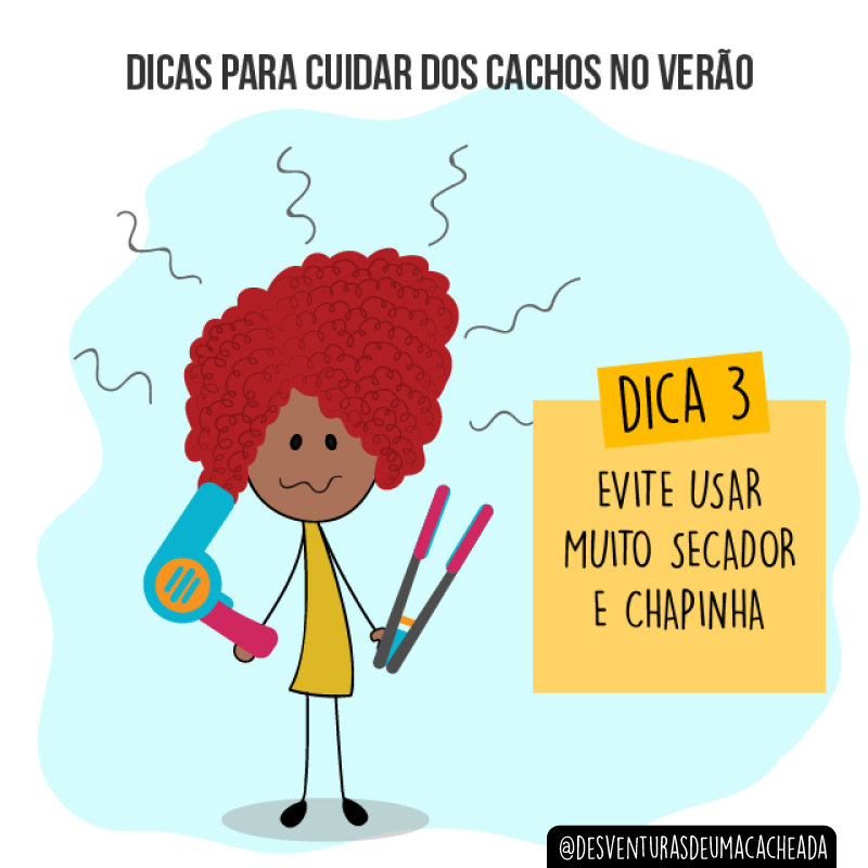 Caso você precise muuuito da chapinha e do jato quente do secador, confira algumas dicas para evitar danos aos seus cachos no verão: