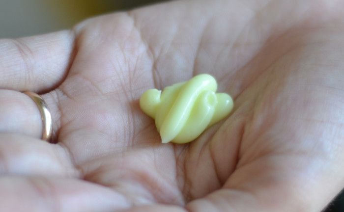 A característica mais marcante, é com certeza o cheiro.Pense num creme com um cheiro bem docinho! Para algumas pessoas pode até ser um pouco enjoativo, mas não fica muito forte no cabelo. í‰ um creme de consisténcia e textura mediana e cor amarela. Não é ralinho, mas não chega a deixar o cabelo pesado.