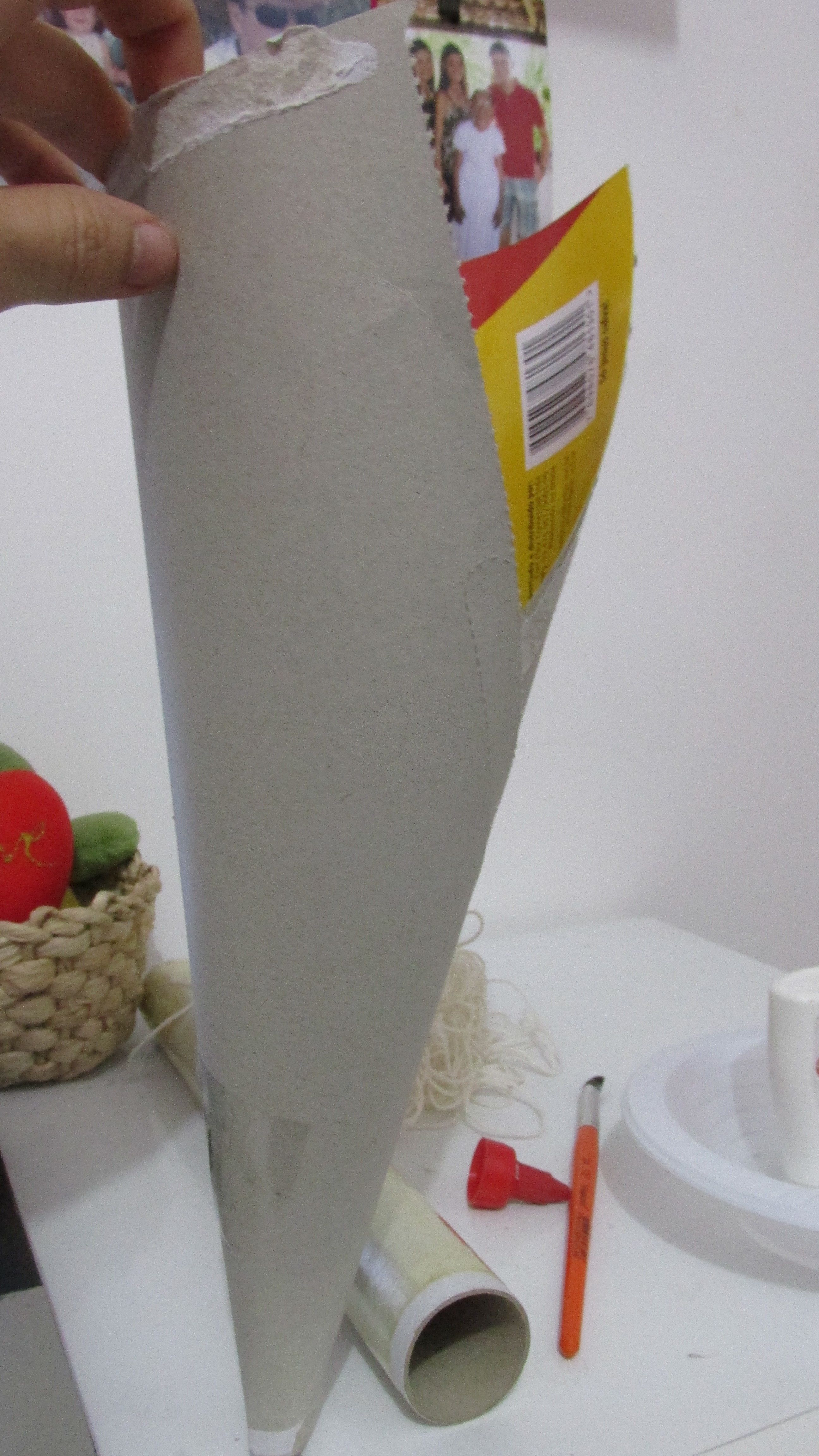 – Cone de cartolina, como preferir e do tamanho que desejar sua árvore.