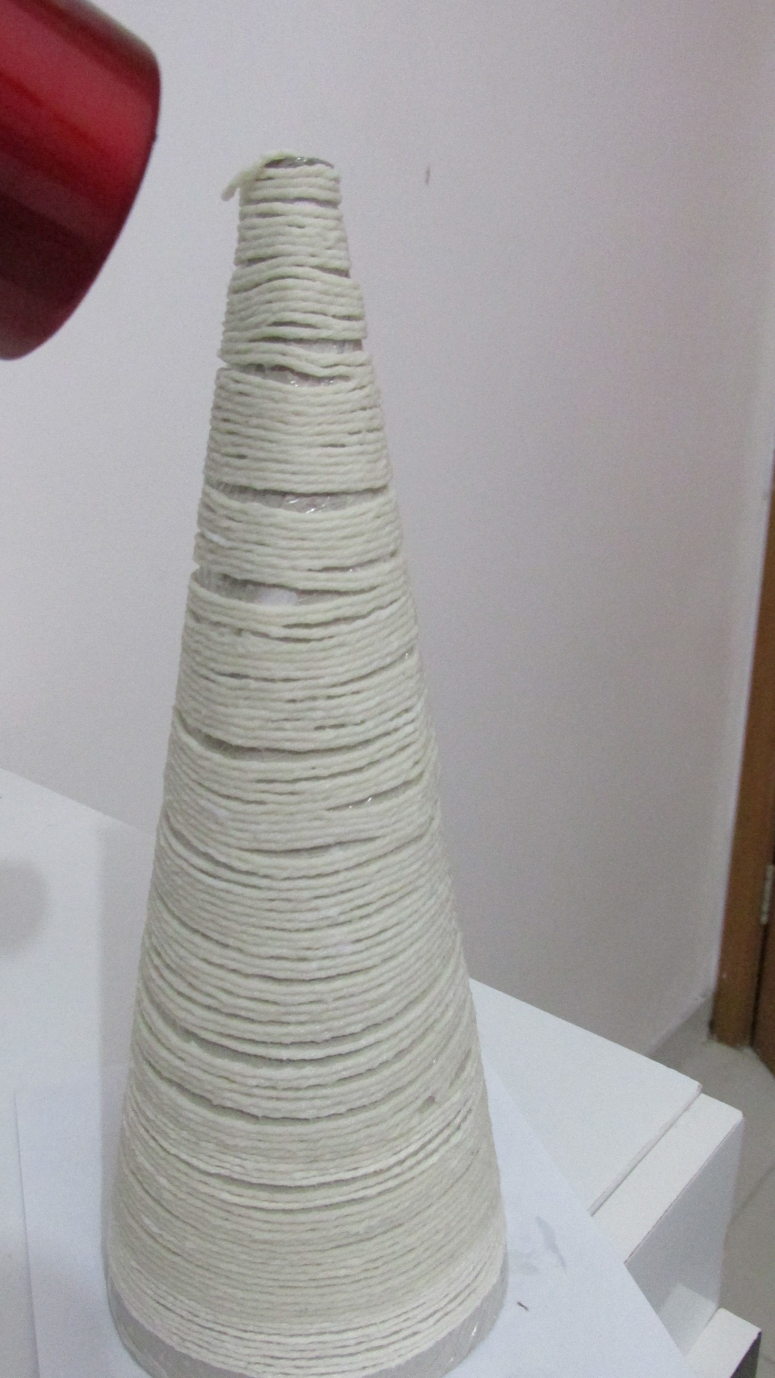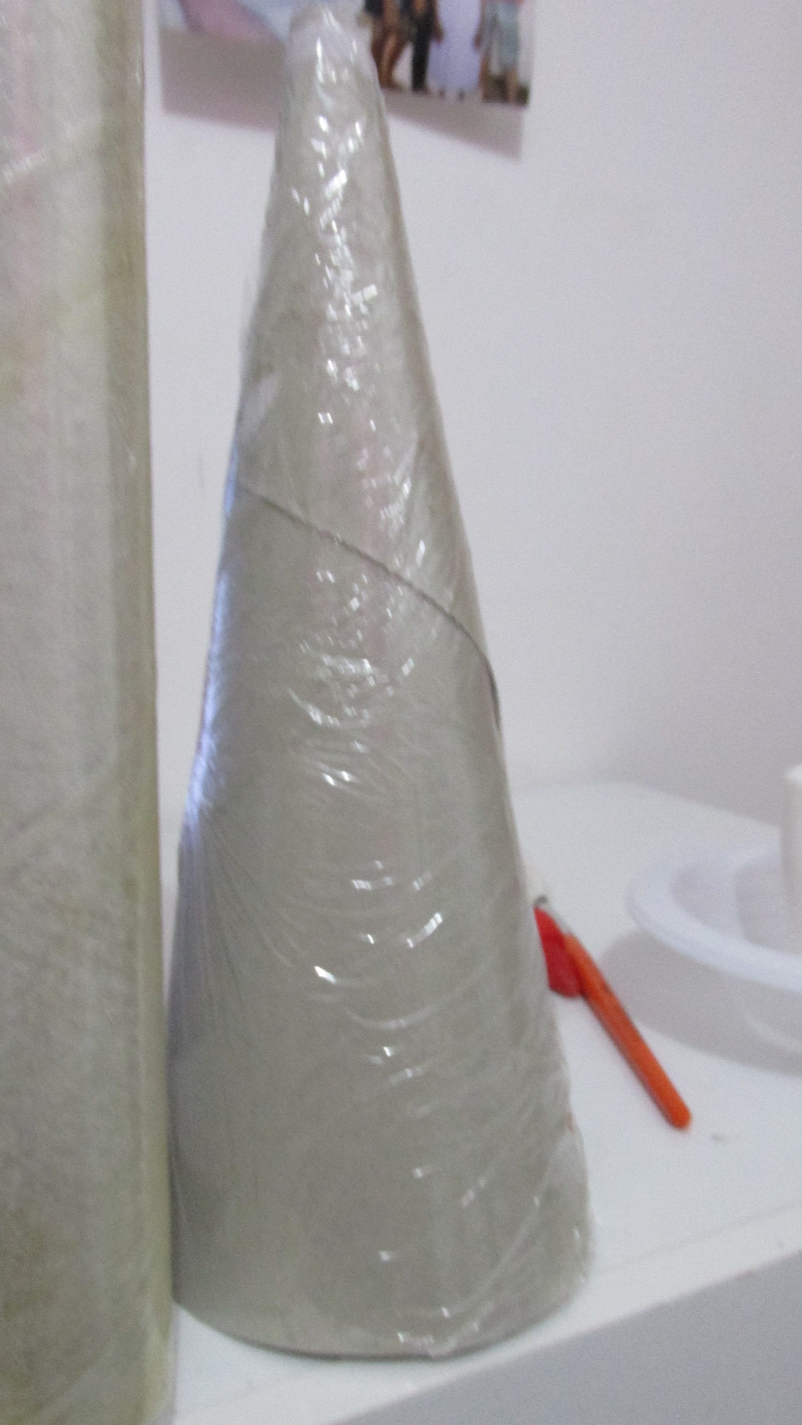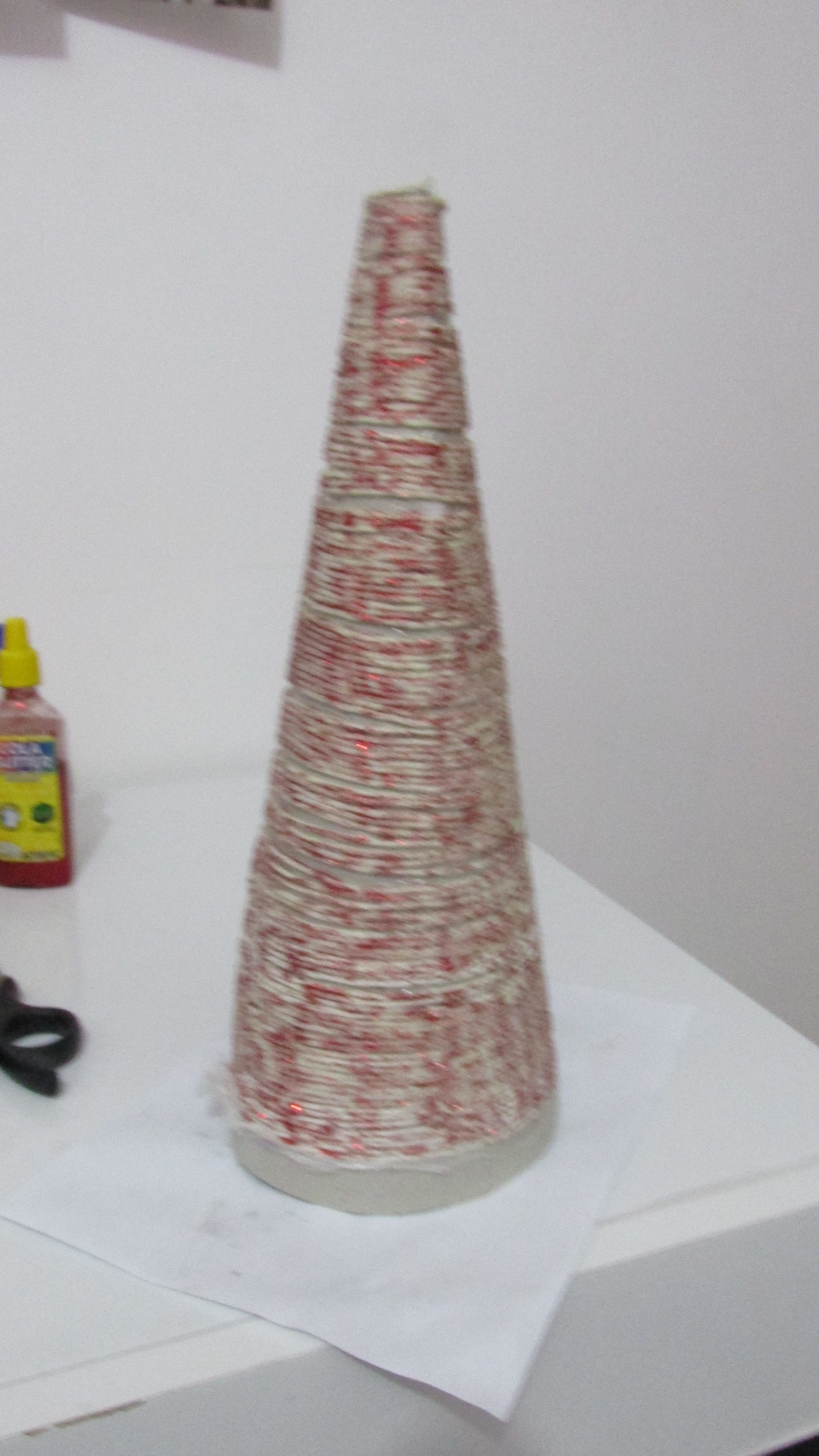 4- Depois de bem seco, retire do cone soltando o papel filme. E se você fez de barbante é só passar uma camada fina de cola e jogar Glitter. E espere secar novamente.