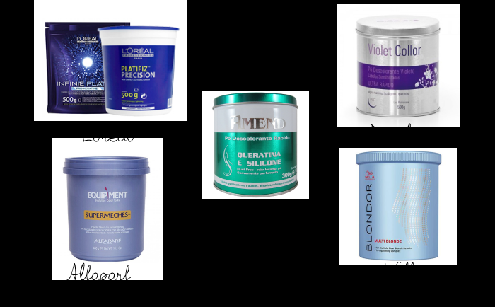 Pó-descolorante: Quanto mais rápido o pó agir, melhor o resultado. O ideal é que o processo dure no máximo 30 minutos. Quando o produto passa muito tempo no cabelo, a probabilidade de danifica-lo é maior. Algumas sugestões de produtos: