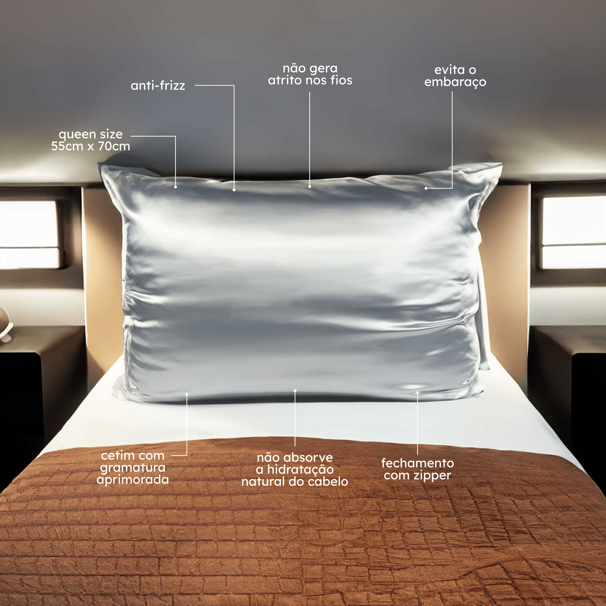 Fronha com ZIPPER Perola de Cetim Anti Frizz – QUEEN SIZE 55X70