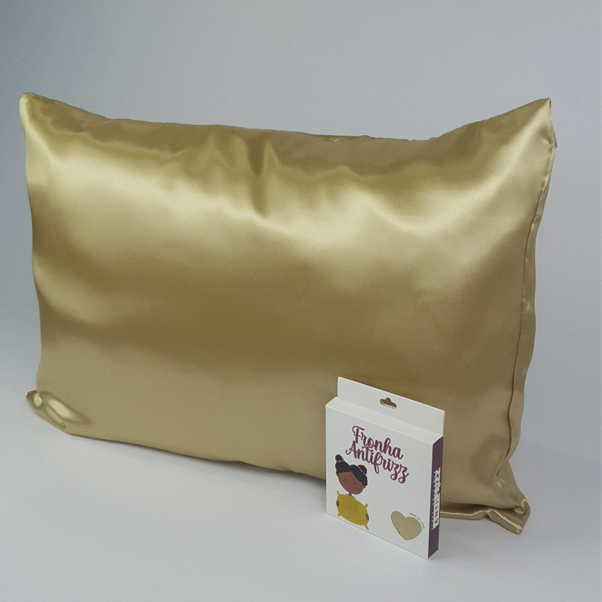 Fronha com ZIPPER Ouro de Cetim Anti Frizz – QUEEN SIZE 55X70