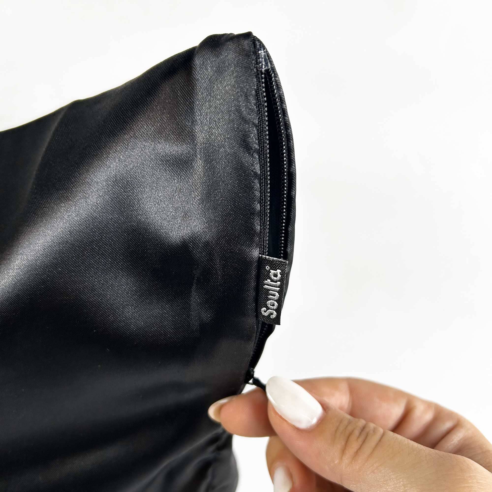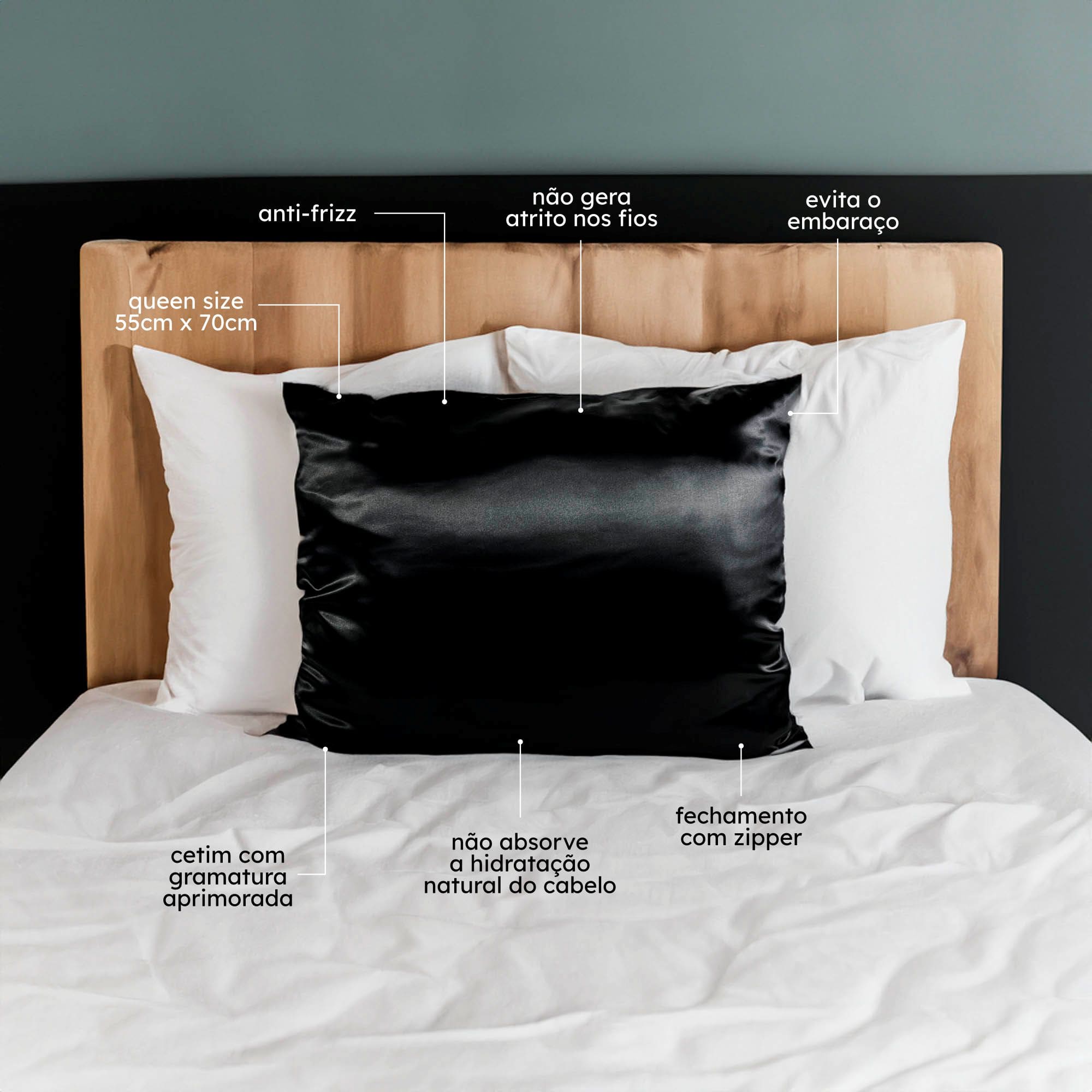 Fronha com ZIPPER Preta de Cetim Anti Frizz – QUEEN SIZE 55X70