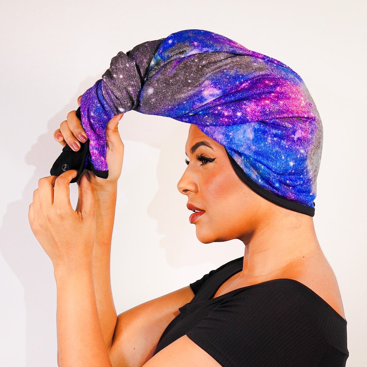 1. **Toalha Turbante:** Ela possui um botão de pressão para prender, tornando-se a parceira perfeita para a técnica “plopping” para que você obtenha cachos perfeitos.