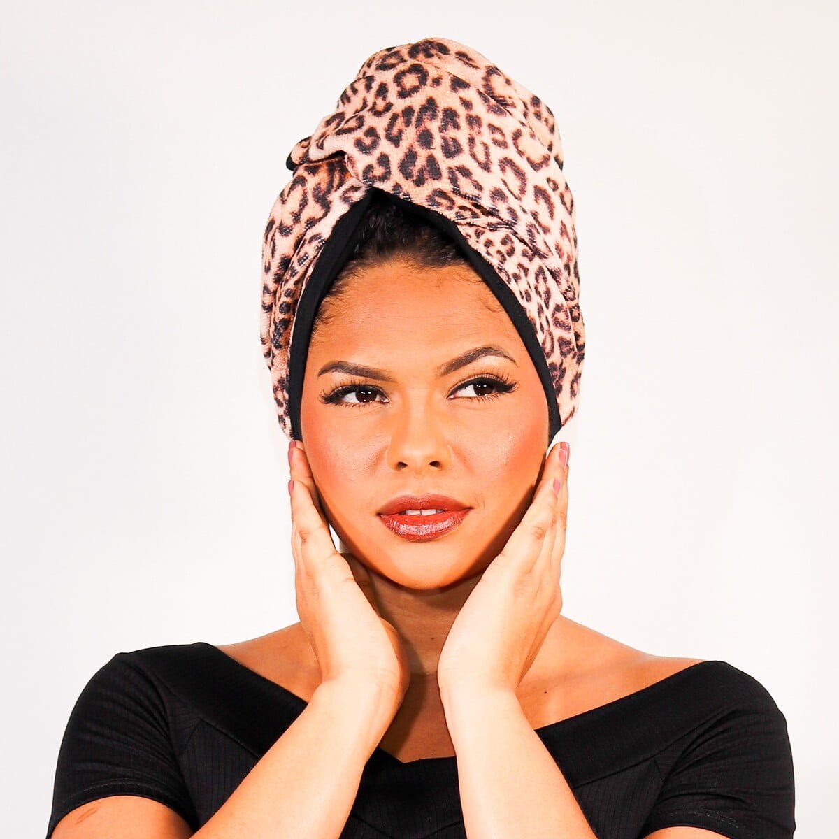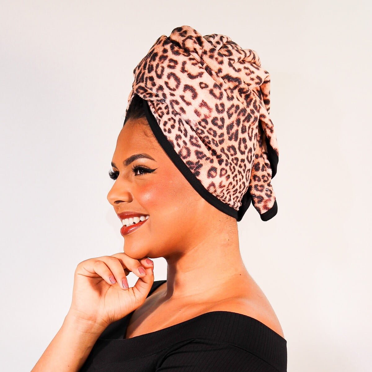 1. **Toalha Turbante:** Ela possui um botão de pressão para prender, tornando-se a parceira perfeita para a técnica “plopping” para que você obtenha cachos perfeitos.