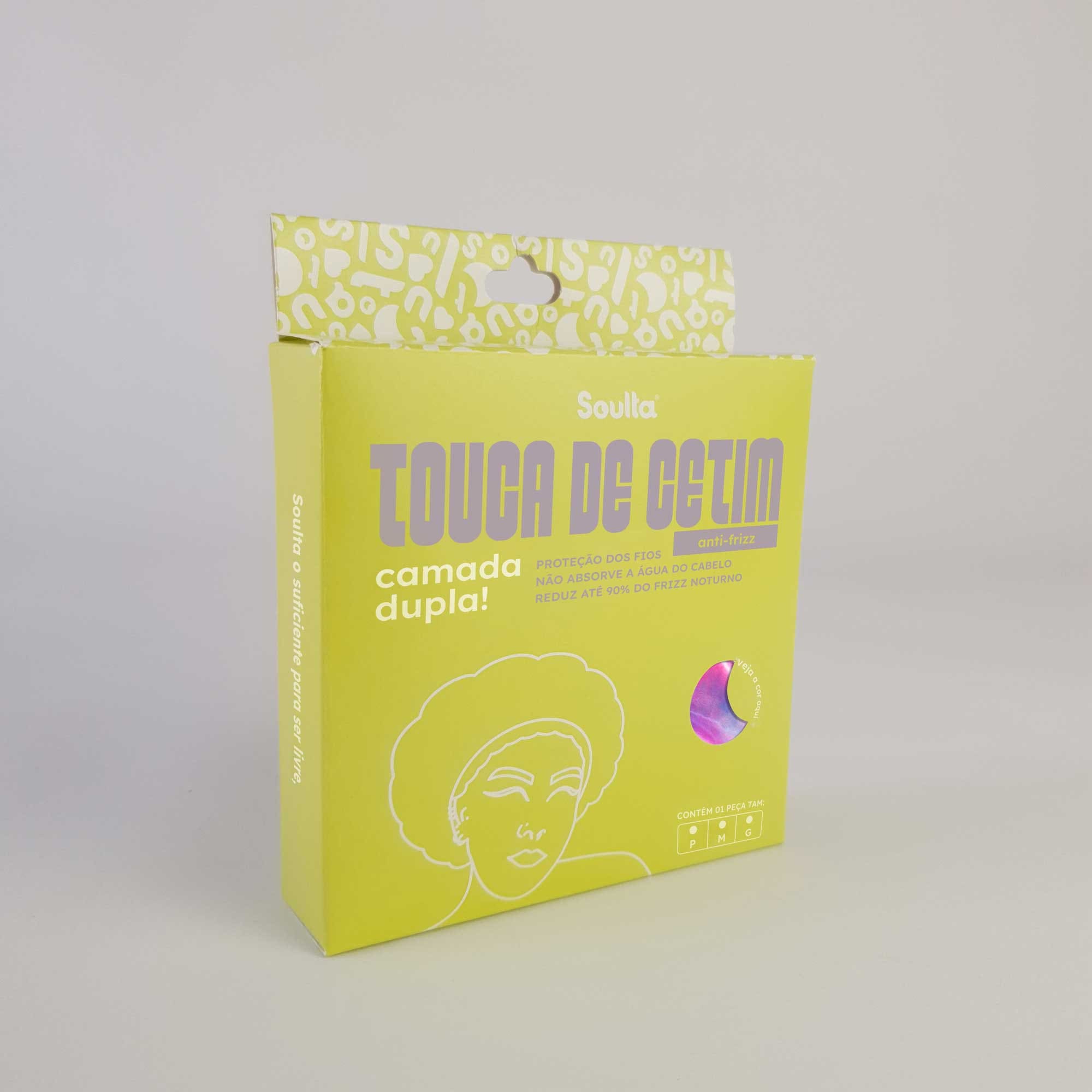 A dupla camada de cetim desta categoria preserva os fios do atrito com tecidos de algodão de itens como fronhas comuns, encosto do carro, capacete, cadeira do trabalho, nossa roupa, etc. í‰ esse atrito de todo dia que provoca o frizz, desmancha os cachos e desidrata os fios.