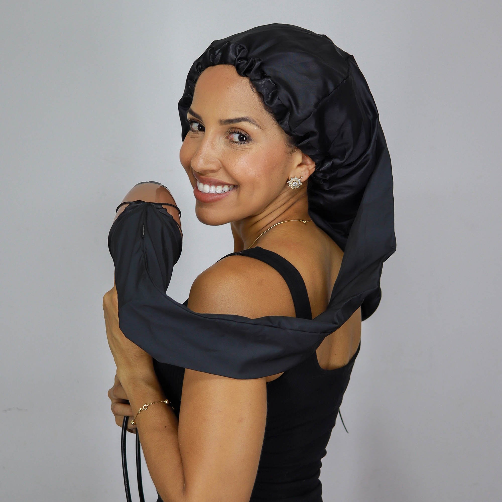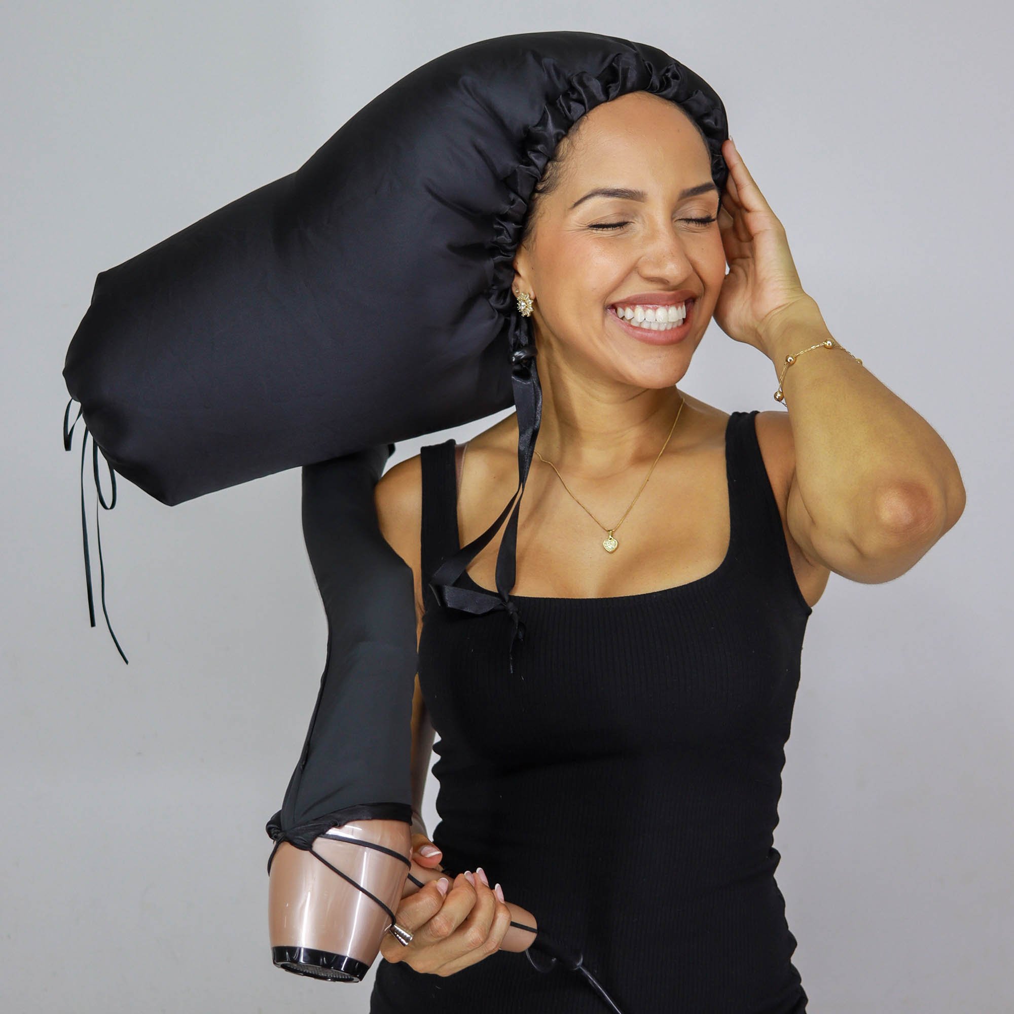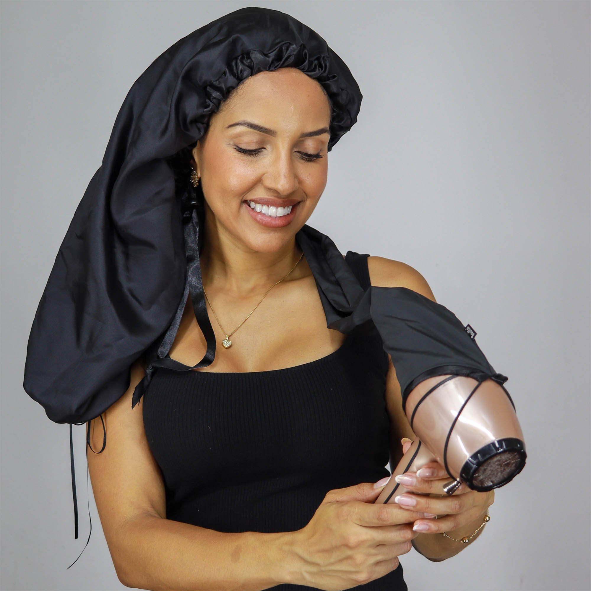 Touca Difusora Alongada Preta de Cetim Anti Frizz
