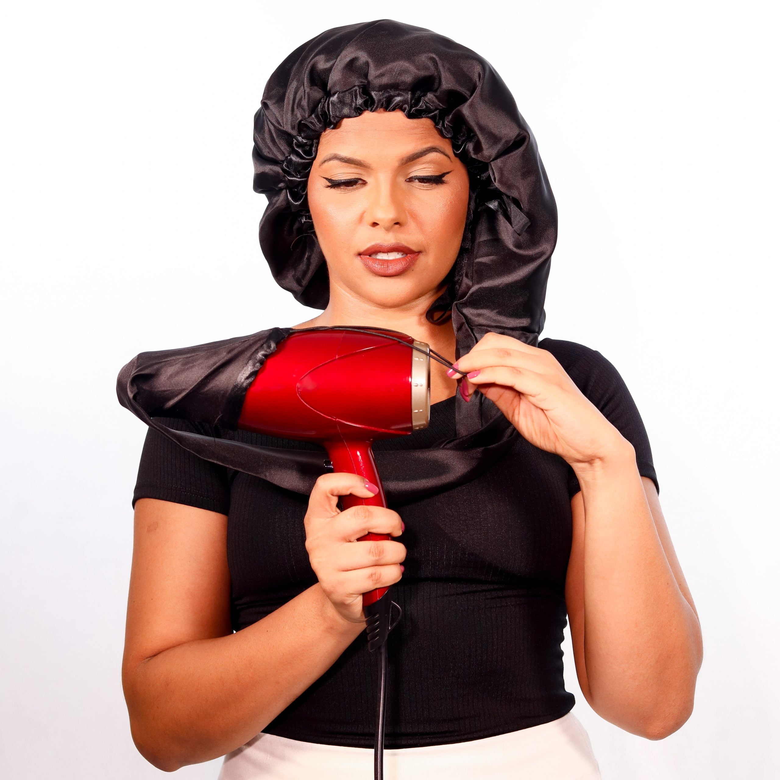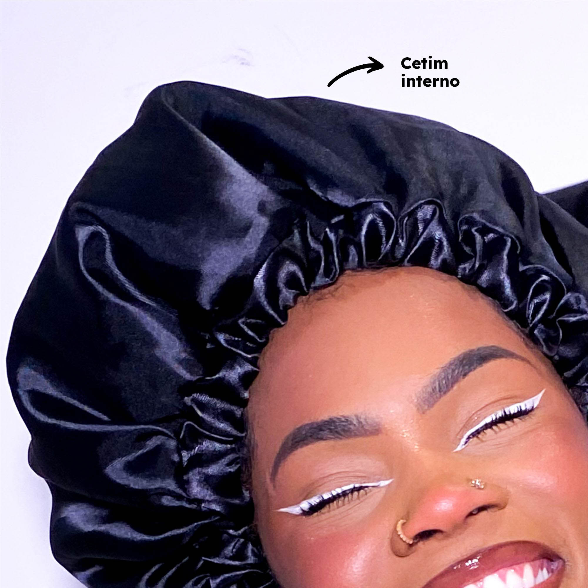 Touca Difusora Alongada Preta de Cetim Anti Frizz